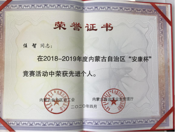 烏海市熱力有限責(zé)任公司任智同志榮獲2018-2019年度內(nèi)蒙古自治區(qū)“安康杯”競賽先進(jìn)個(gè)人