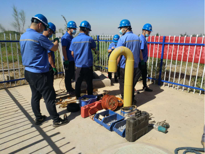 三、安全員對(duì)提下泵前各項(xiàng)工作進(jìn)行檢查,是否正確佩戴安全防護(hù)用品、是否斷電、對(duì)井室進(jìn)行先通風(fēng)、后對(duì)有害氣體進(jìn)行檢測(cè),檢查井室內(nèi)有無對(duì)工作有影響的雜物等,簽下井作業(yè)票,確保安全后,作業(yè)人員下井工作。