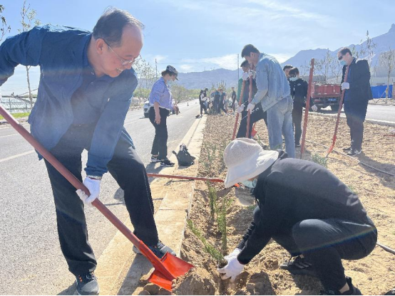山清水秀美如畫,綠水青山靠大家。5月17日上午,陽光明媚,市城投集團公司組織集團公司本部干部職工60余人開展“堅持生態(tài)文明建設(shè),推動實現(xiàn)高質(zhì)量發(fā)展”市城投集團公司義務(wù)植樹活動。大家揮鍬鏟土、扶樹正苗,合力栽下一株株優(yōu)質(zhì)樹苗,同志們一邊植樹,一邊向技術(shù)人員詢問樹木品種、生長習(xí)性等情況,所到之處一株株樹苗迎風(fēng)挺立,呈現(xiàn)一派熱火朝天的植樹場面。