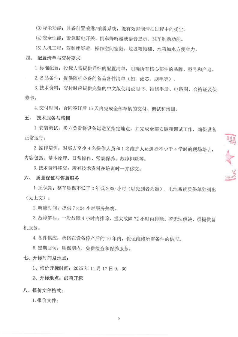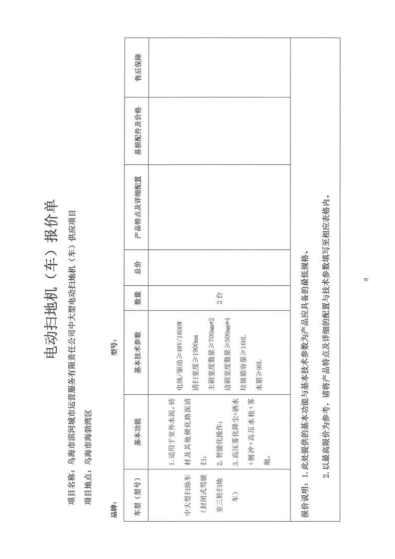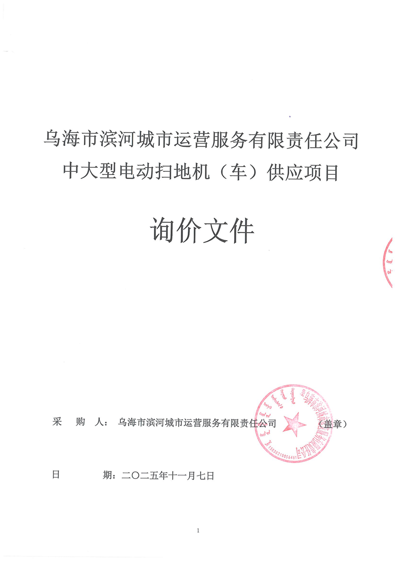 烏海市濱河城市運(yùn)營服務(wù)有限責(zé)任公司中大型電動掃地機(jī)(車)供應(yīng)項(xiàng)目詢價(jià)文件