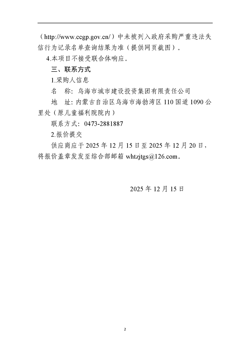- 2025-09-17烏海市濱河城市運營服務(wù)有限責(zé)任公司廣告設(shè)計、制作、安裝服務(wù)商采購詢價文件