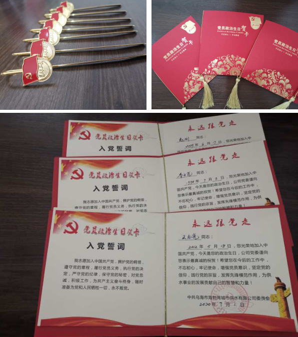 烏海市海勃灣城市供水有限公司為進(jìn)一步增強(qiáng)主題教育的吸引力和感染力,于6月24日開展黨員“過政治生日,憶入黨初心”主題黨日活動。五個黨支部分別在完成奏唱國歌、重溫入黨誓詞、領(lǐng)誦黨章、繳納黨費(fèi)、學(xué)習(xí)政治理論后為黨員過“政治生日”。
