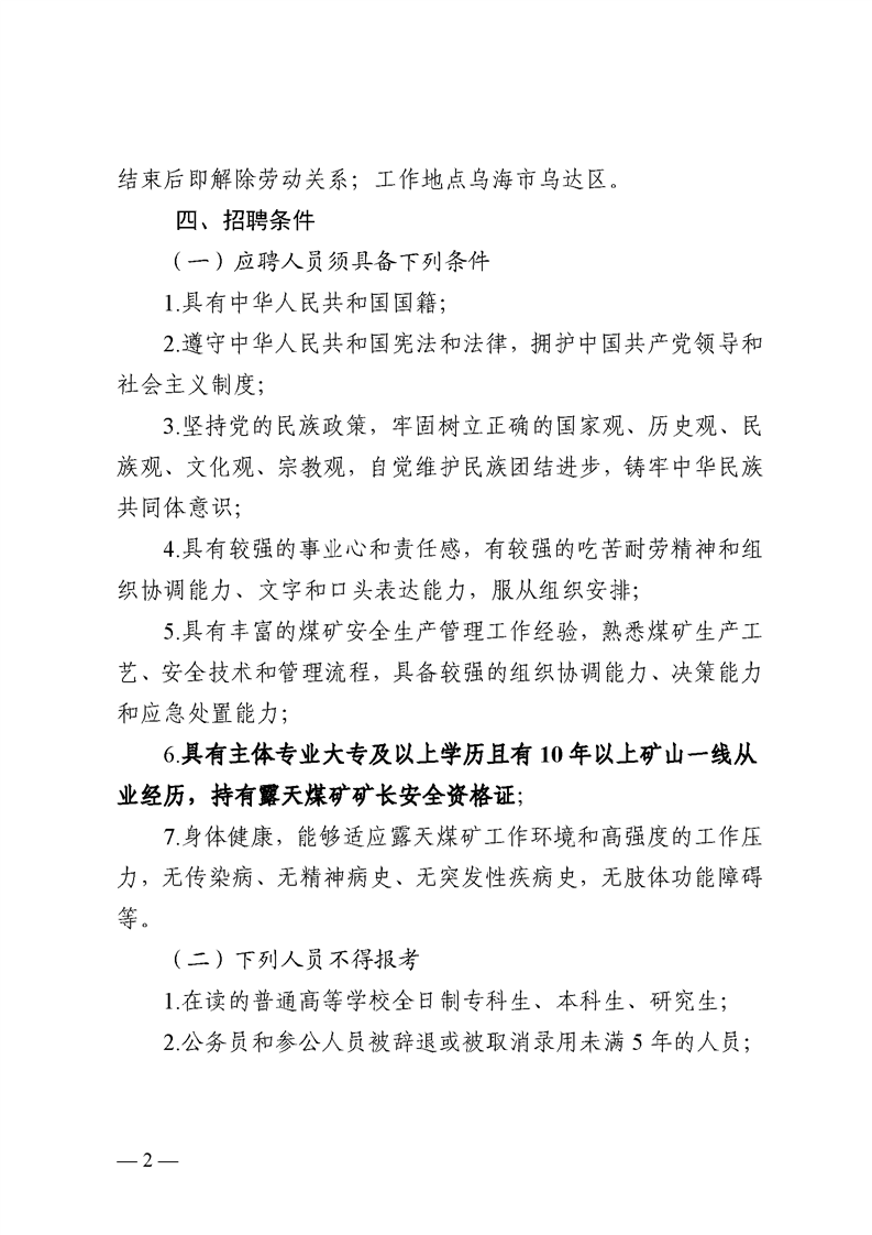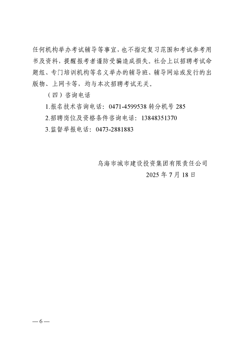 - 2025-07-24烏海市城市建設(shè)投資集團(tuán)有限責(zé)任公司五虎山井田南部采空區(qū)災(zāi)害綜合治理項(xiàng)目公開(kāi)招聘項(xiàng)目負(fù)責(zé)人考試面試公告